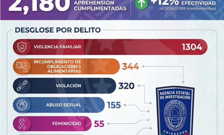 Cumplimentó AEI 2 mil 180 órdenes de aprehensión por delitos de género en el Estado durante 2025